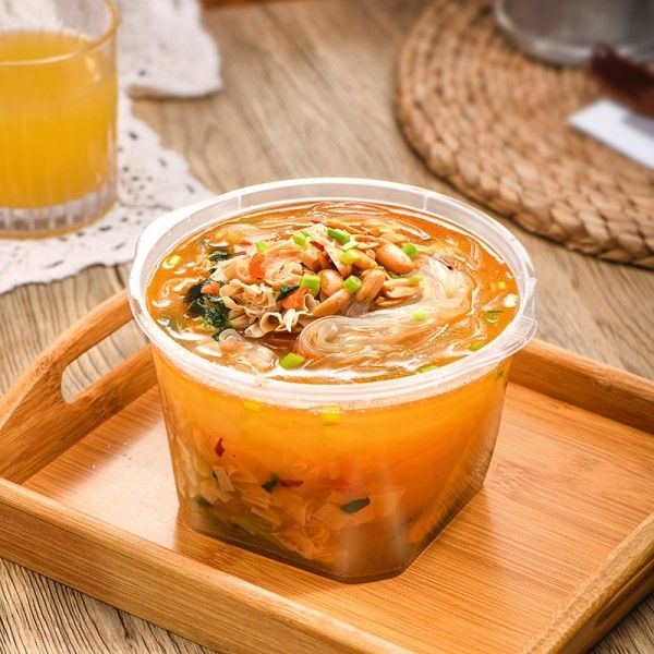 1. पारदर्शी ढक्कन खोलें, वर्मीसेली और सामग्री डालें, अंदर भरने की लाइन में उबलता पानी डालें।
